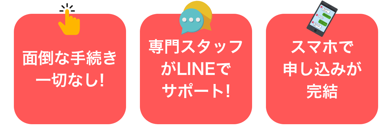 ご希望のタイミングで当社商品に関するより詳しい詳細と、お申し込みのフローについてのご案内をLINEまたはお電話にてさせていただきます。