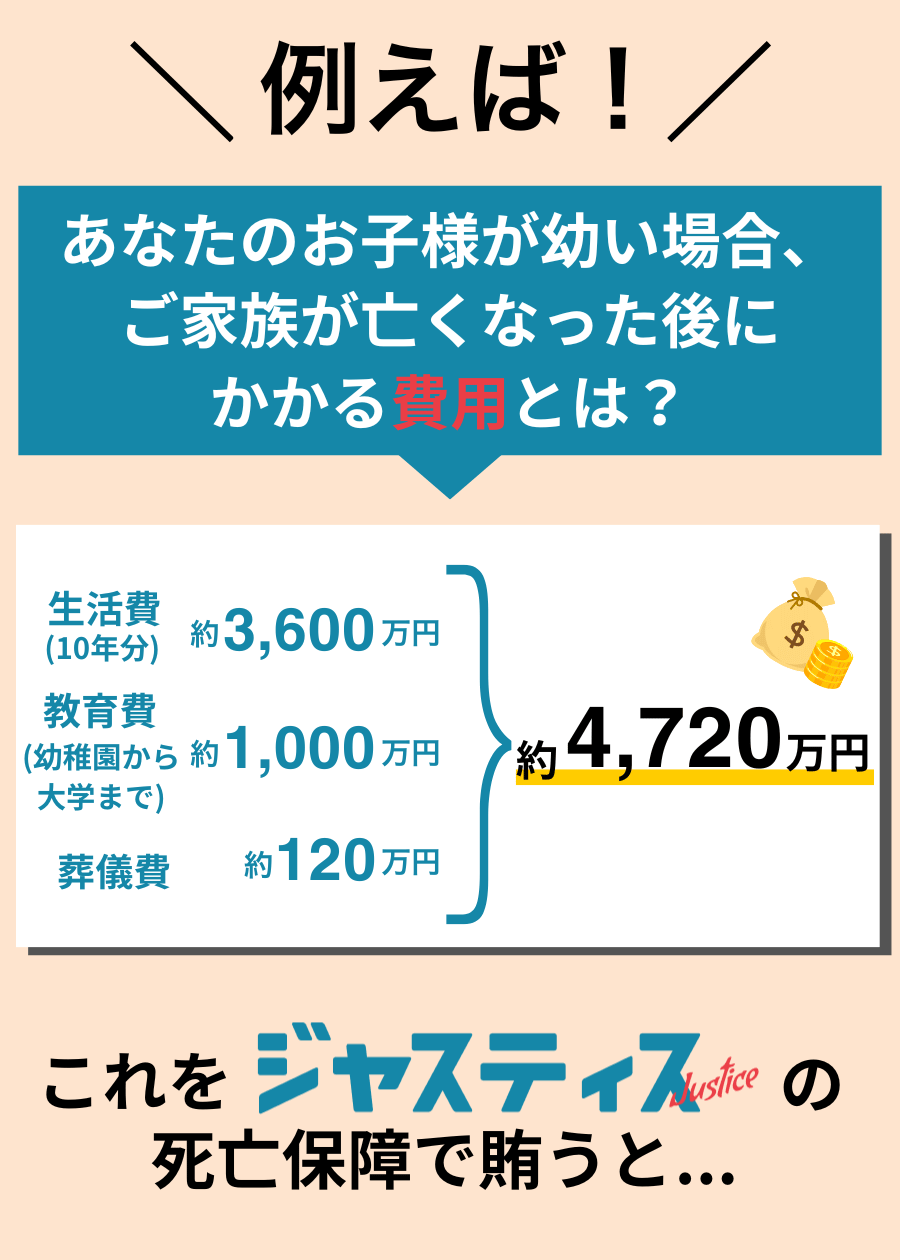 ジャスティスでは本当に必要な4つの保障で将来のリスクに対応でき、安心とゆとりをご提供いたします。
